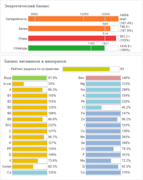 | Итого за день | 2972 | 1744.3 | 120.2 | 45 | 212.6 |