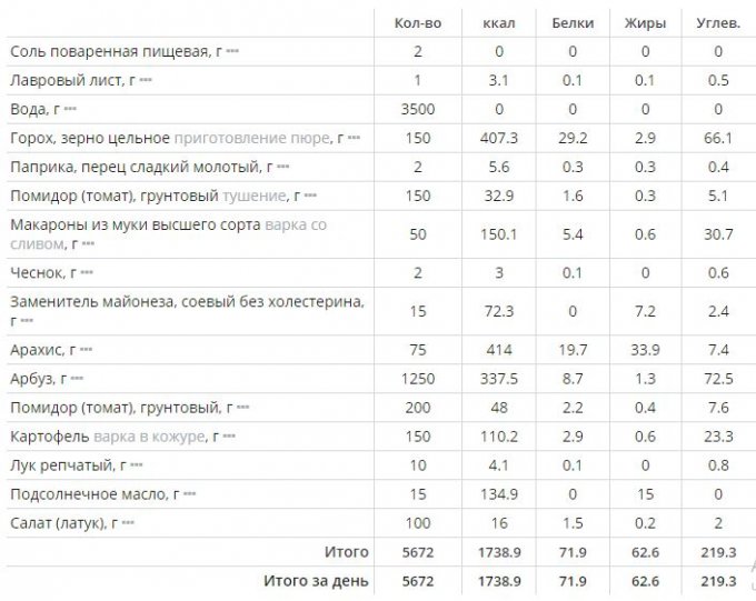 | Кол-во | Калории | Белки | Жиры | Углеводы | |