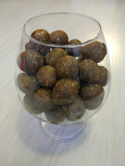 делюсь: в блендере сначала финики прокрутить, потом добавила все, кроме кокосовой стружки (ее добавляю в готовую массу), скатала шарики грамм по 10. Детей за уши не оттащить, хотя по отдельности ну разве что цукаты попробуют