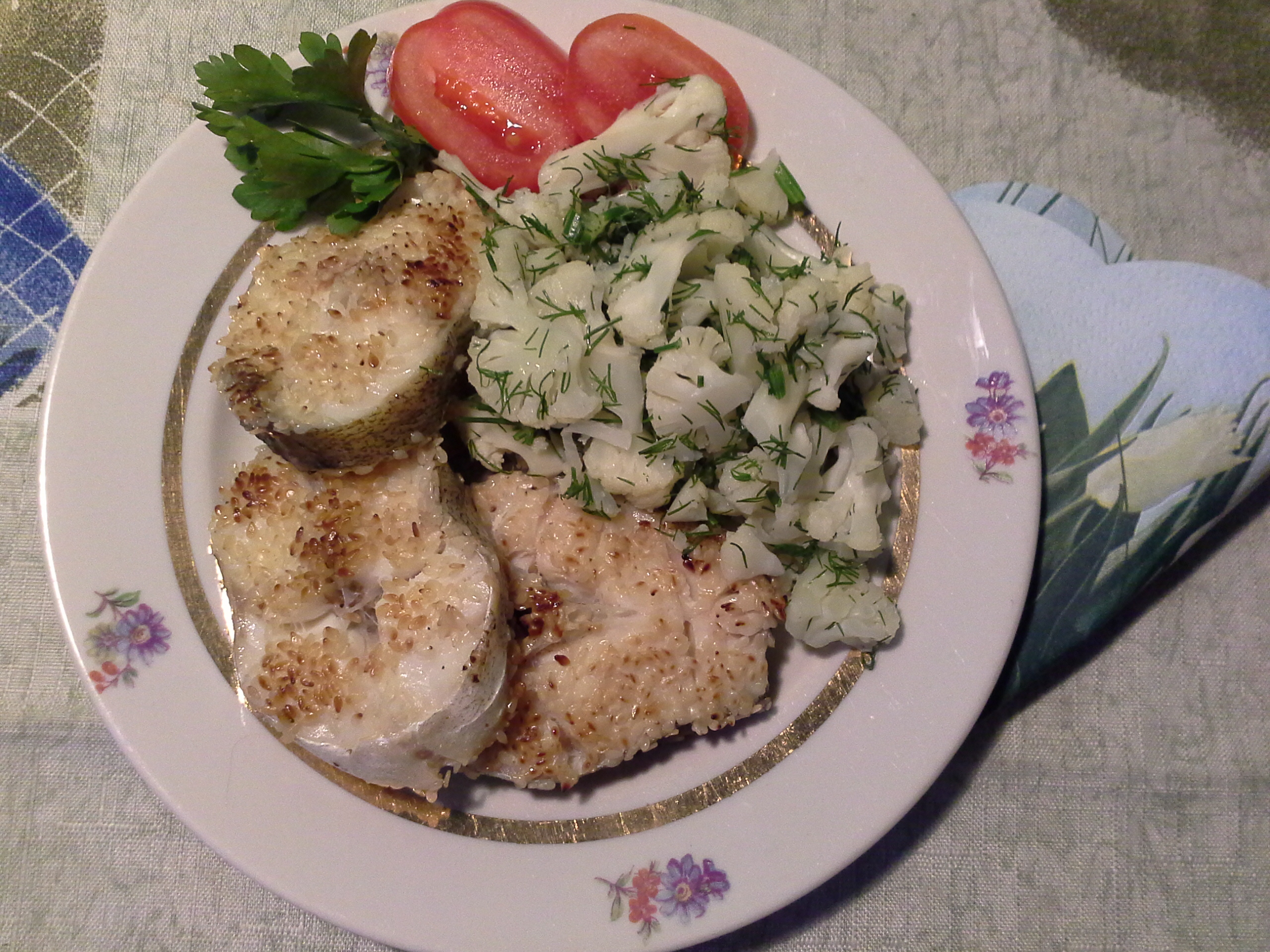 подойдёт овощной гарнир из припущенной цветной капусты с петрушкой
