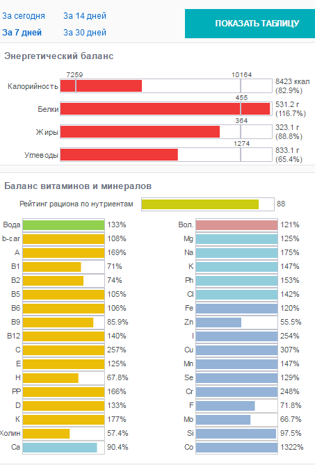 | Итого за день | 2855 | 1056.9 | 67.3 | 38.1 | 109.8 |