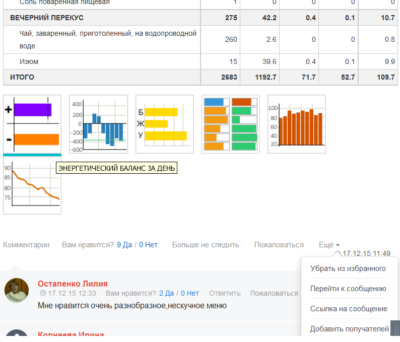 | Итого за день | 2683 | 1192.8 | 71.8 | 52.7 | 109.6 |