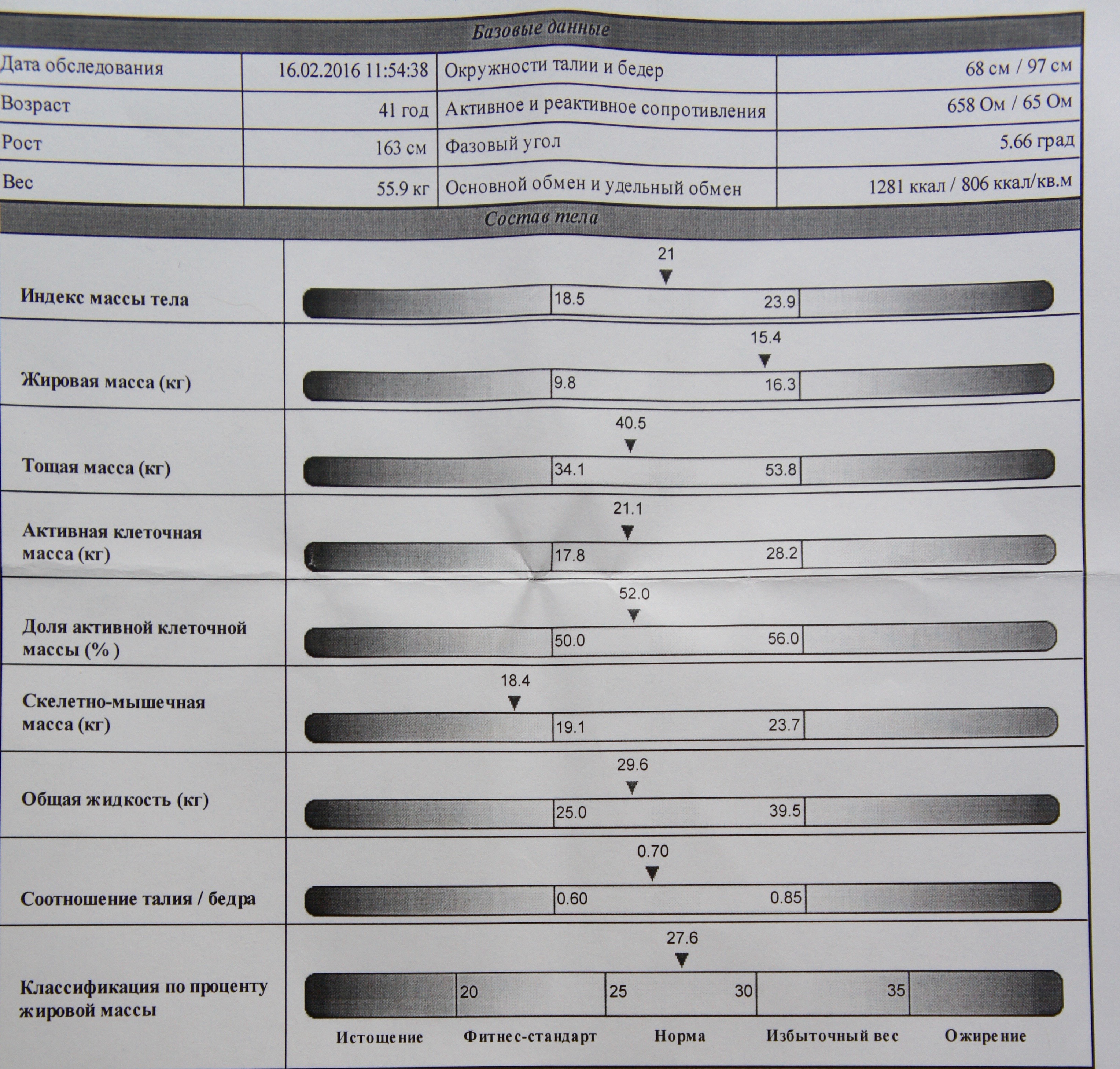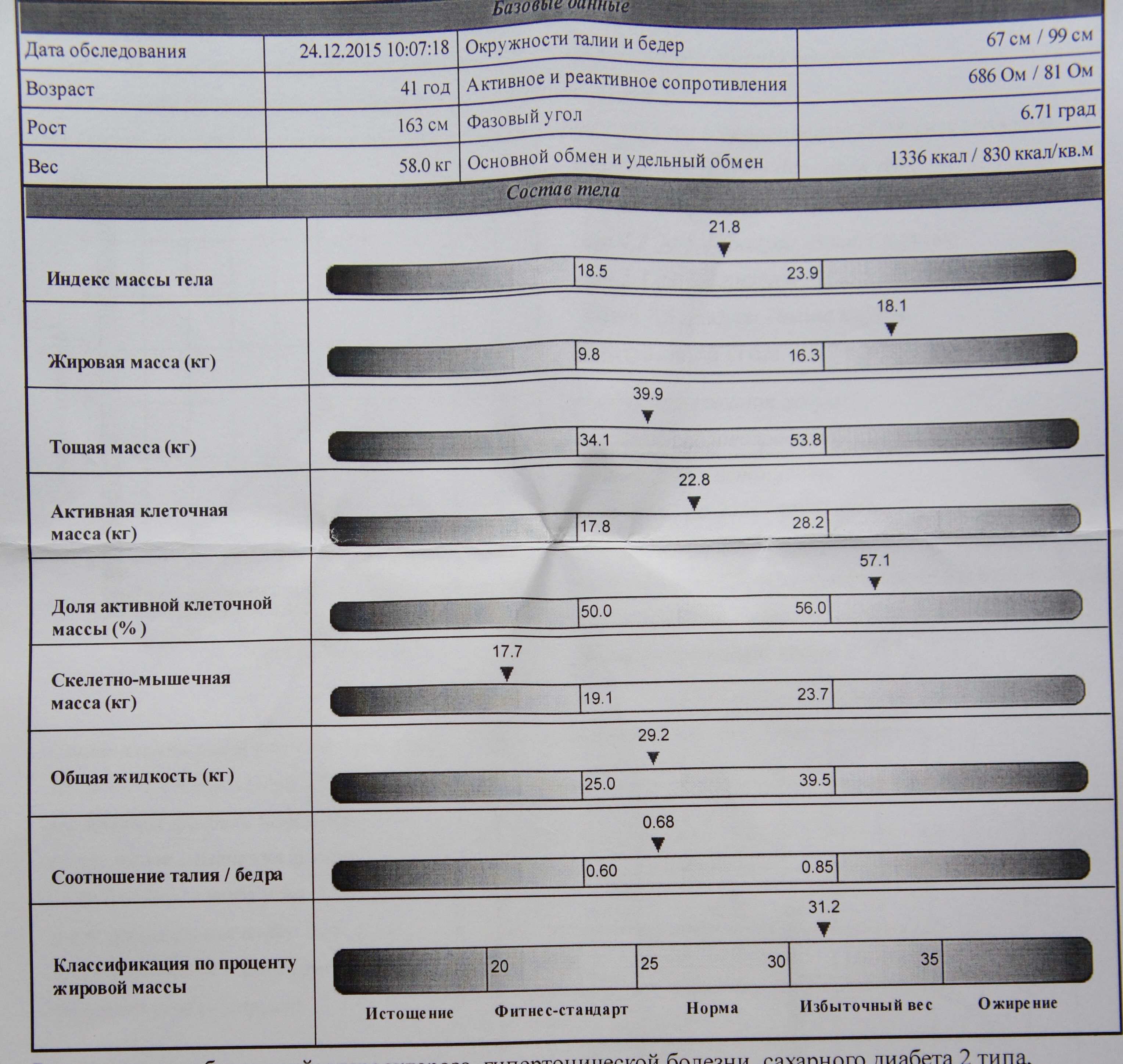 ИМТ 21, жировая масса: минус 2,7кг, теперь она в пределах нормы,