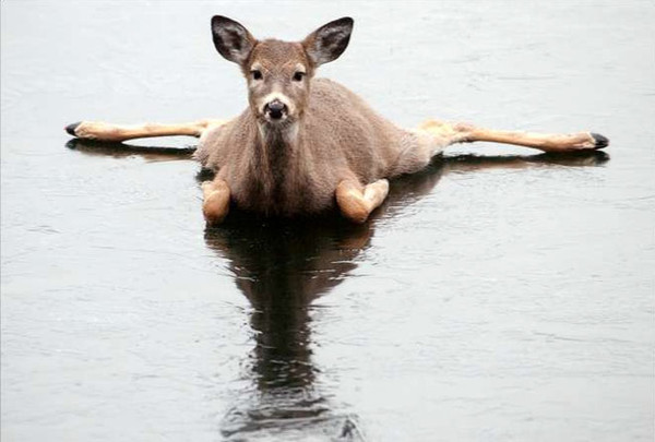 Моя Мотенька(собачка), аж на пузике проехала по такому льду.