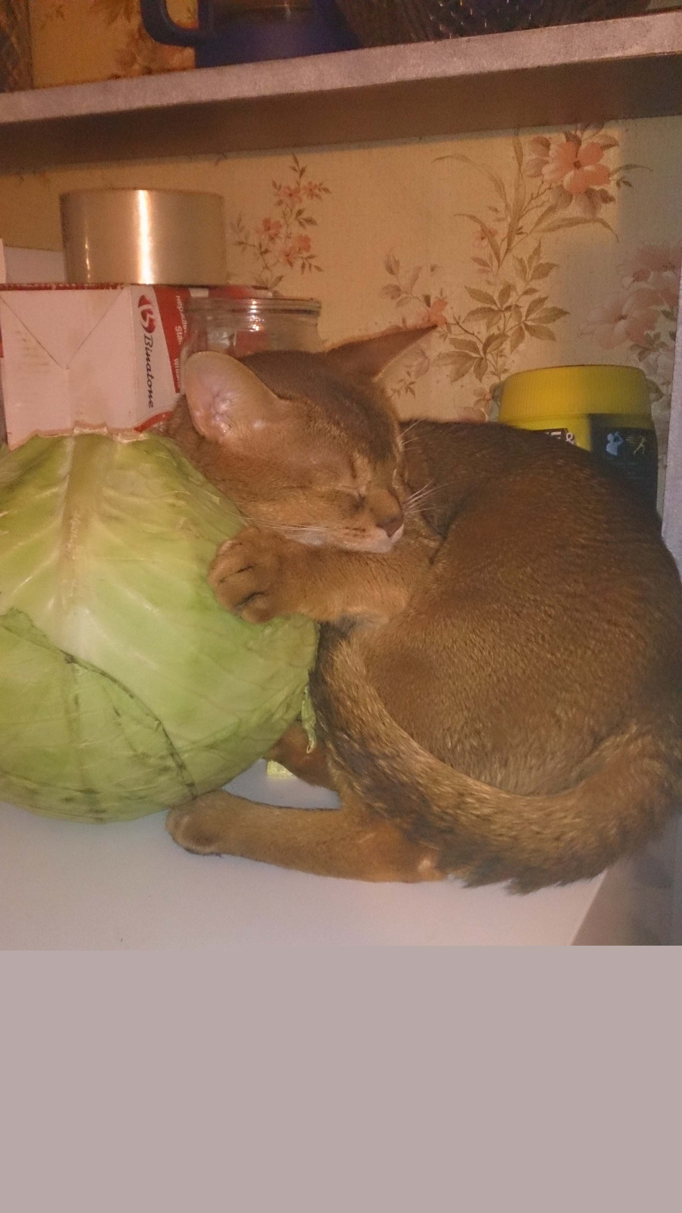 не кот на столе, а капуста на его любимом месте, на холодильнике