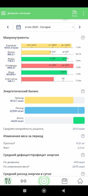 | Итого за день | 3870 | 1654 | 110 | 61 | 120 |