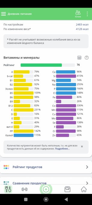 | Итого за день | 4050 | 1860 | 86 | 76 | 200 |