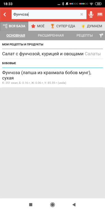 | Фунчоза (лапша из крахмала бобов мунг), сухая | 100 г |