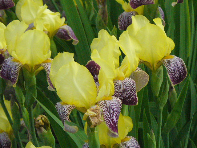 бархатцы, ирисы, астры разноцветные и ромашки. Глаза радует эта