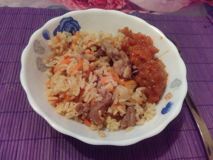 | Рассольник с курицей и перловой крупой с картофелем. |