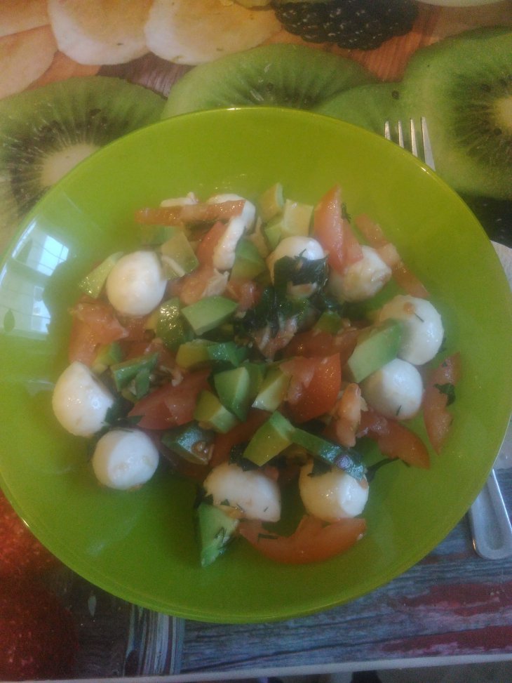 Все ингредиенты помыть,нарезать, почистить, чеснок под пресс, добавить соль,перец , лимонный сок и оливковое масло.Помидорки лучше черри,к сожалению у меня их не былоМожно добавить зелень.Приятного аппетита:-*
