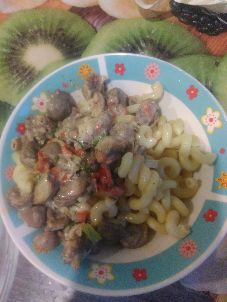 Болгарский перец помыть, нарезать,лук почистить, нарезать кубиком. Обжарить лук на растительном масле до золотистого цвета,туда же болгарский перец.Сердечки промыть, нарезать ,удалить лишний жир. Тушить вместе с овощами минут 12,до выпаривания лишней жидкости.Добавить сметану или натуральный йогурт,соль ,специи.Готовить ещё пару минут, посыпать свежей зеленью.Ваш быстрый ,вкусный и полезный ужин или обед готов.На гарнир идеально подойдут греча, 🍚 рис иногда и макарошечки можно .Кушайте на здоровье.