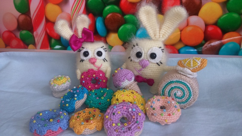 Вот получились у меня зайчики-сластены. Ребенок пытался съесть вязанное мороженое) Теперь у меня дома всегда есть выпечка от которой не потолстеешь.