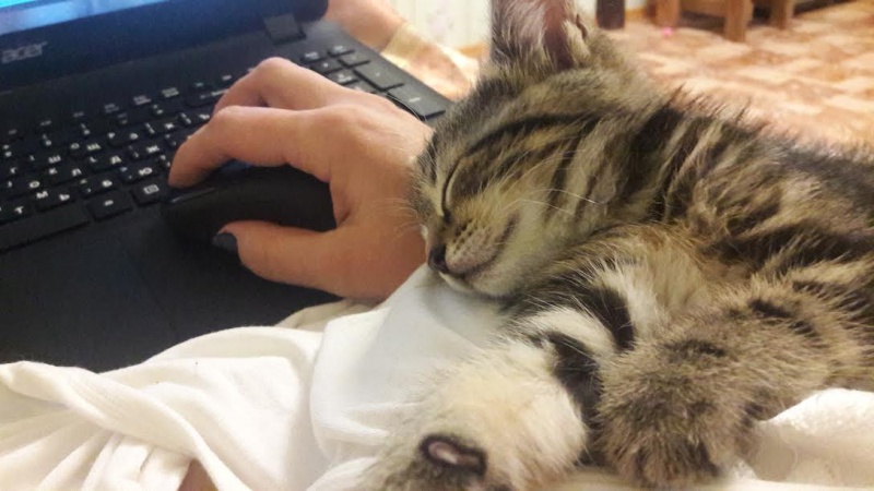 А еще у нас новый член семьи - котенок))) Сын в восторге, с ходу