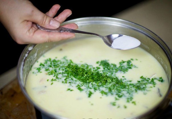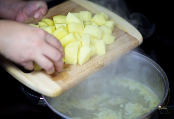 4. Когда картофель будет почти готов, положите в суп нарезанную