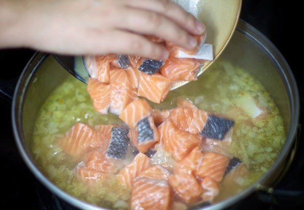 небольшими кубиками рыбу. Варите около 5 минут, затем добавьте