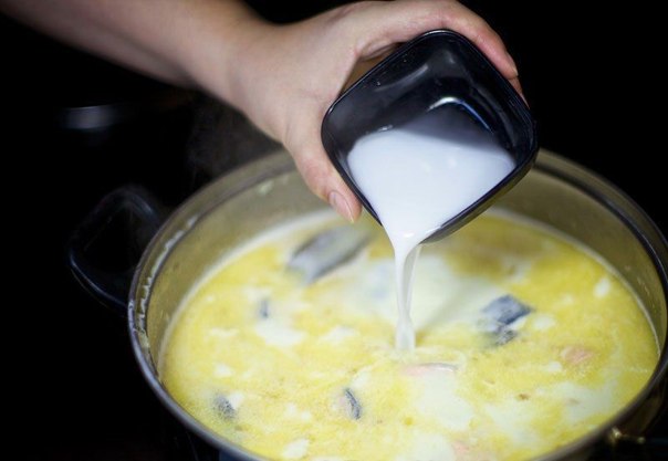 вылейте в кастрюлю, помешивая. Варите суп еще 5-8 минут.