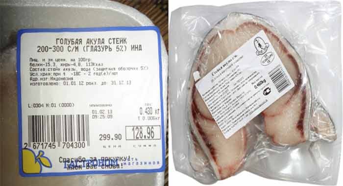 Сегодня в магазине увидела стейк из акулы замороженный.