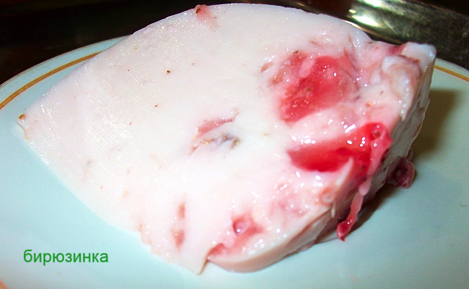 Добавила желатин в йогурт с клубникой.Размешала и
