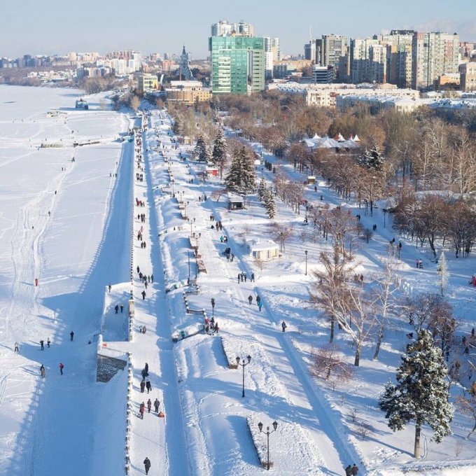 удобно поехать прямо в городе на набережную и полноценно на лыжах