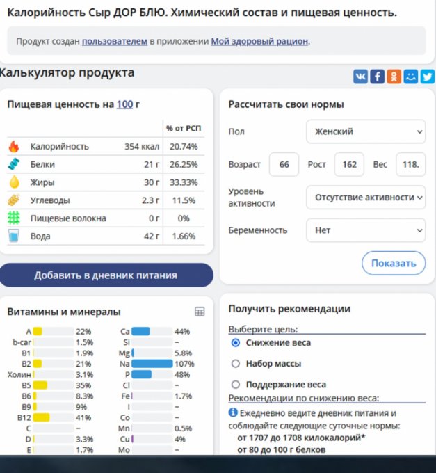 сожалению. Тоже, когда ем горгонзолу, ввожу камамбер, чтобы учесть