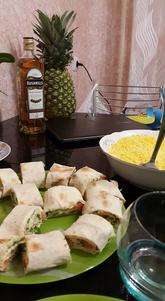 "Джин, ром, водка, виски,.." если читать не зная, что просто в продуктах обобщено, сразу завидно такому безудержному празднику