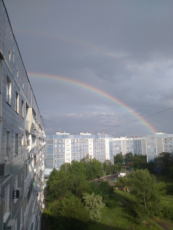 Радуга из моего окна. Почему-то с мобильного фото на почту пришло через день. Радуга была 18 мая. Думала, что совсем не могу мобильником пользоваться. А как работает МЗР на мобильном? Может ли такая старушка как я научиться пользоваться им?