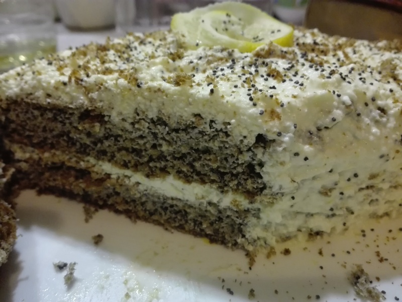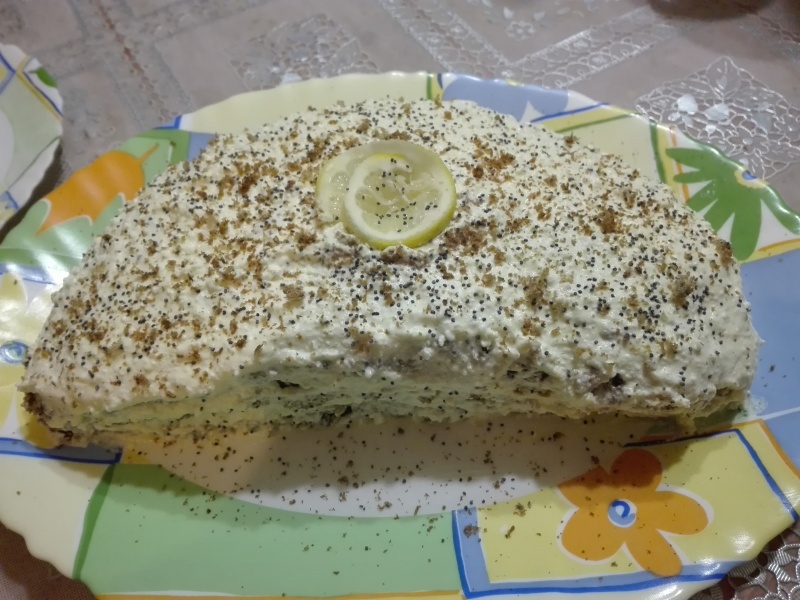 апельсин вместо лимона. Корж можно готовить без мака. До утра не
