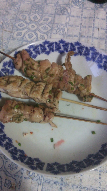 На хороших углях ,но не на сильном жаре, на решётку положили