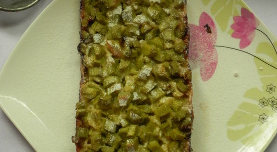Ревень очистить от кожицы и порезать небольшими кусочками.