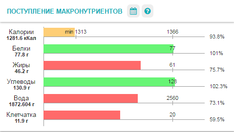 | Итого за день | 3114 | 1492.8 | 85.9 | 68 | 135.6 |