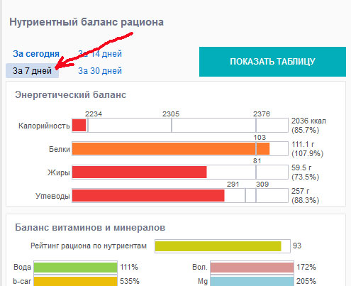 дней" и увидите свой энергетический баланс за неделю. (см.