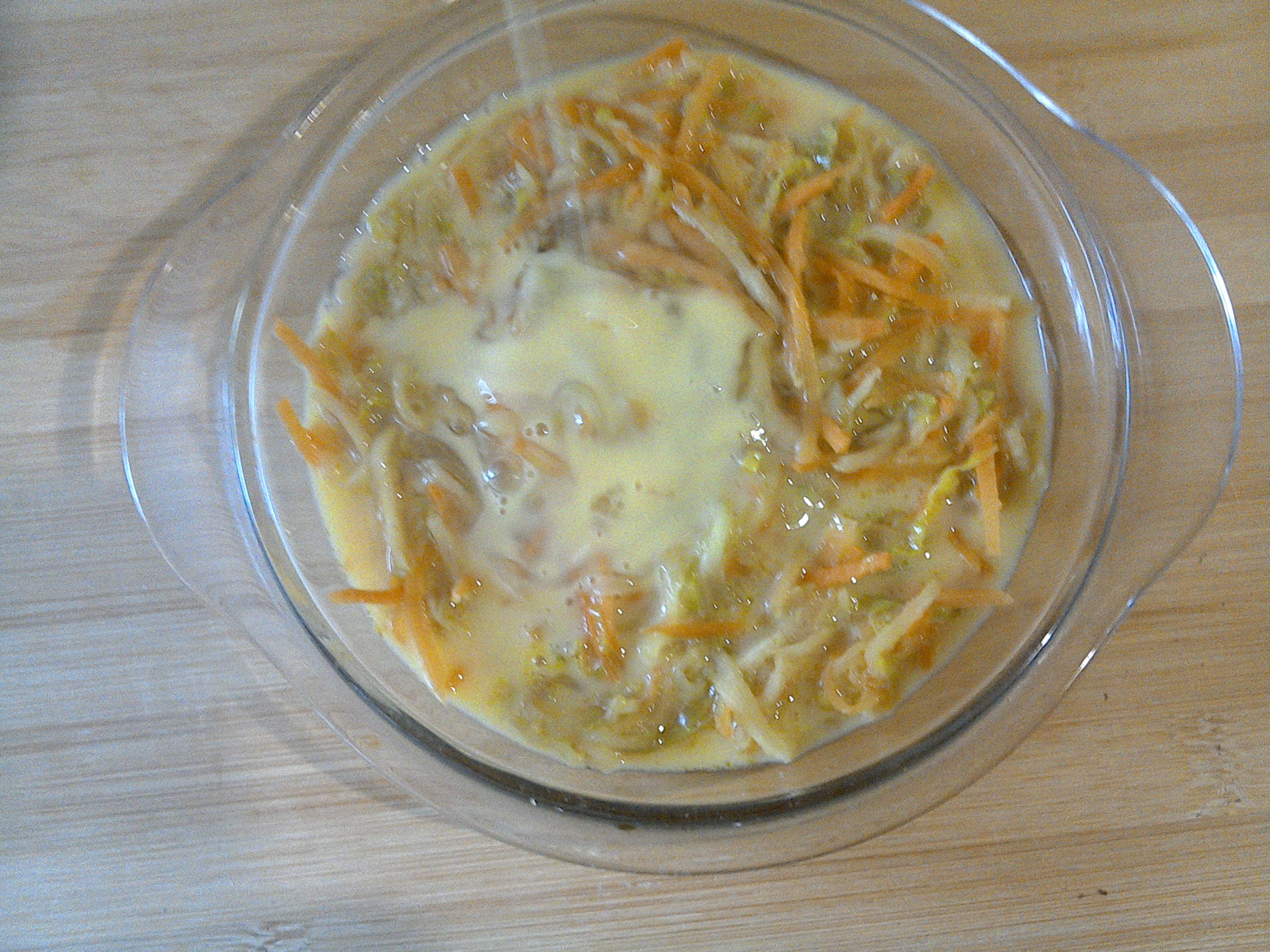 - Добавить яблоко, сбрызнутое лимонным соком, переложить в