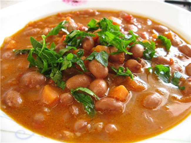 В бульон, оставшийся от мяса, любой, положить промытую фасоль,лучше