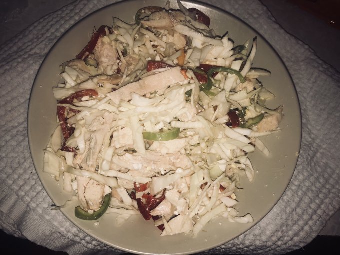 | салат капустный с грудкой и овечьей брынзой |