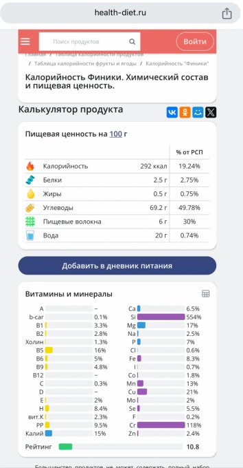 | Кол-во | Калории | Белки | Жиры | Углеводы | |