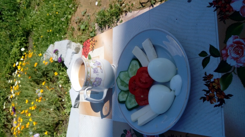 утренний перекус, сижу наслождаюсь: солнышко светит, кузнечики
