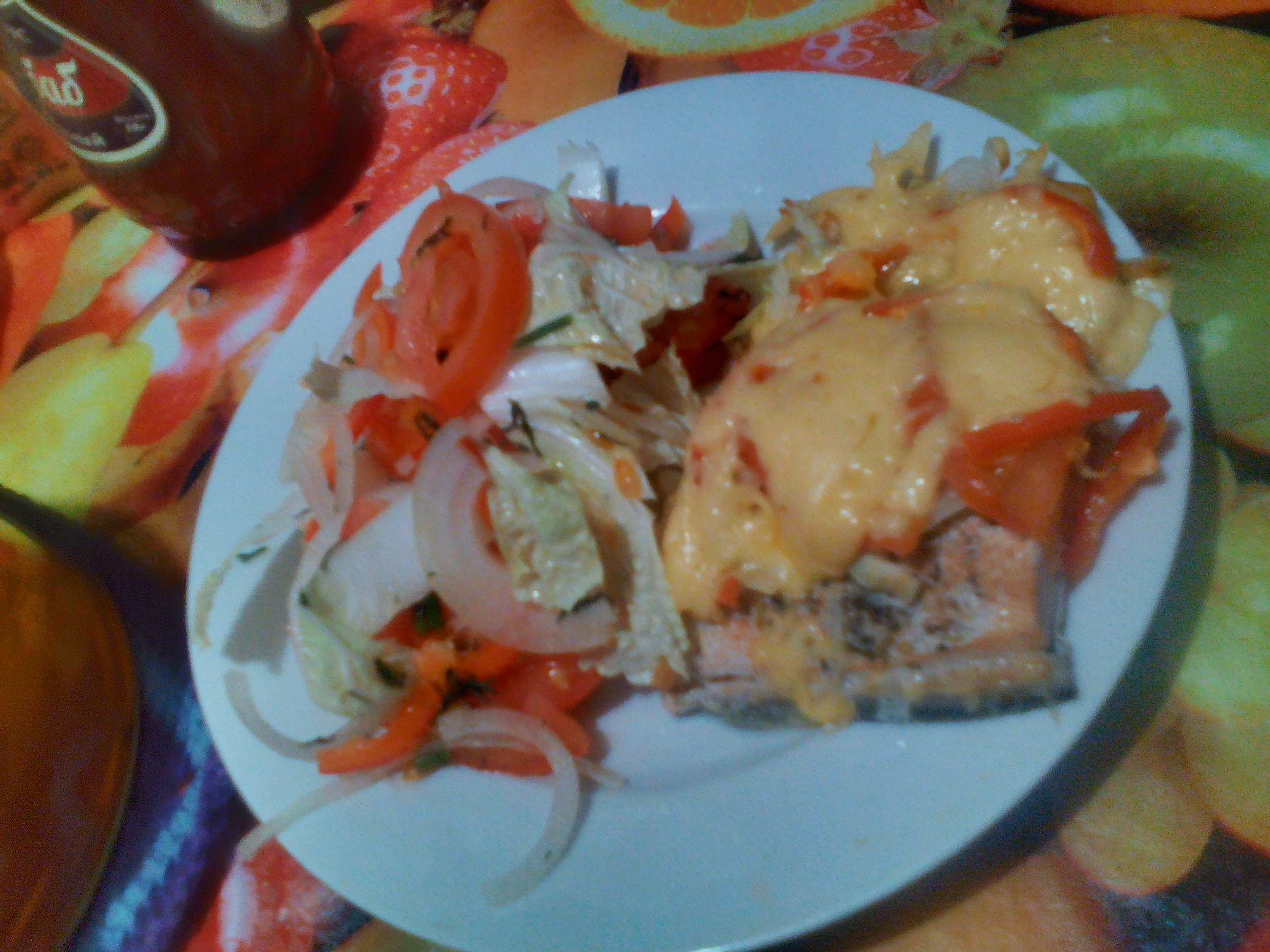Подавала горбушу со свежим салатом. Было очень вкусно и сытно! Фото
