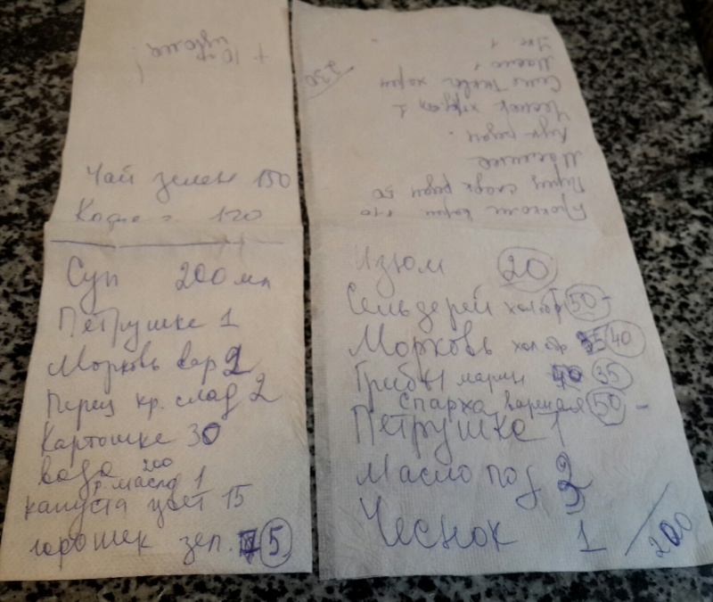 Вот пришлось сегодня обедать в кафе. Суп и два салата.