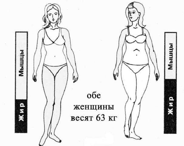 определенный вес. А красивое тело это больше мышц и меньше жира. Ну