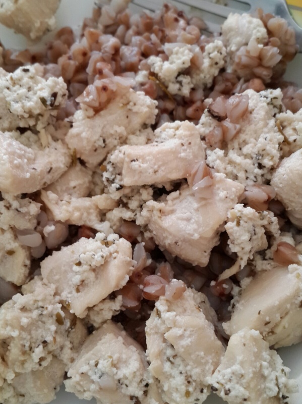 блюдо повышенной белковости. Курица с творогом. Сыворотку я слила.