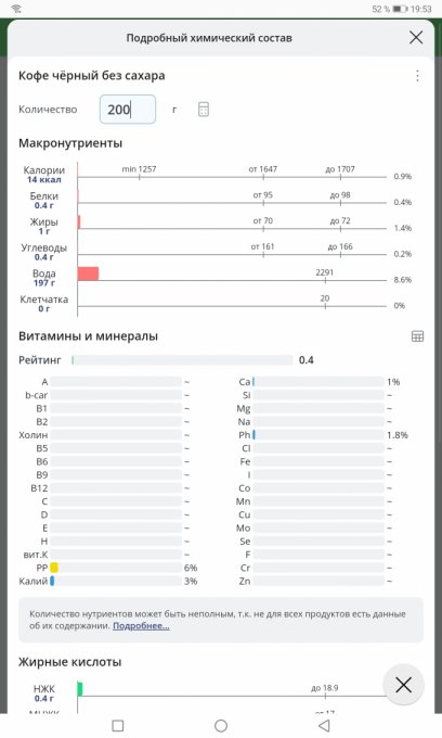 Привет. Впервые за 5 лет я залезла в состав нутриентов кофе.