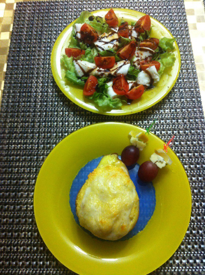 расчета 1-2 яйца на 3 груши) . Выложить сыр с яйцом на половинки