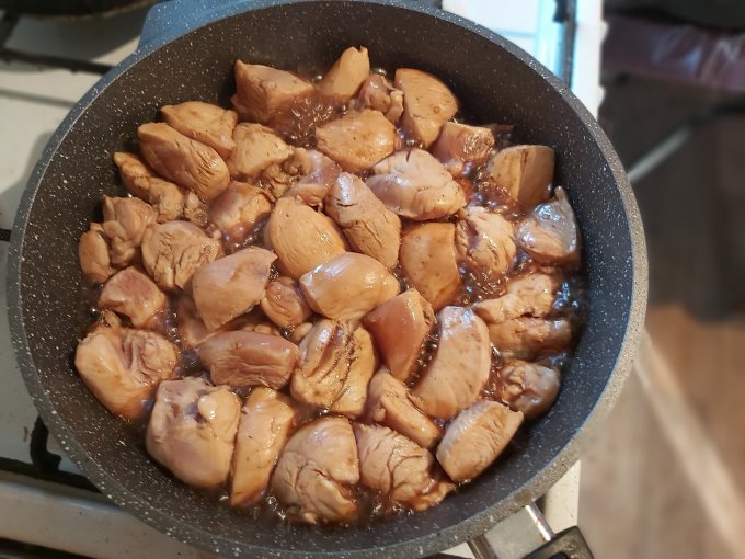 | Курица, цыплята-бройлеры, грудка, только мясо, тушеное |
