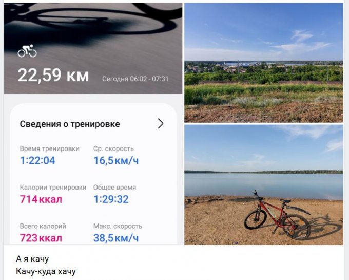 Велопрогулку мне моя Самсунговская прога как 6000 шагов посчитала )) И машина не завелась вчера радио и свет забыл выключить - акк сел )) пешком на работу 2500 шагов и столько же обратно - чтото к этому мероприятию дождь собирается )) с утра +32 в тени было))  сча пасмурно и парит