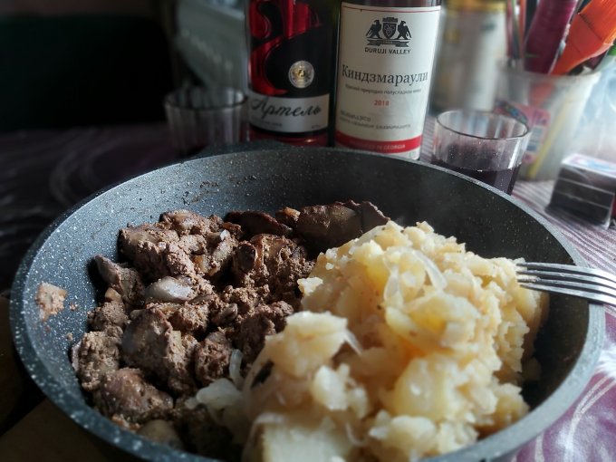 Выходные прошли под пивко и винишко. С вкусняшками. Куриная печень тушеная в сливках, в луково\чесночно соевом соусе.