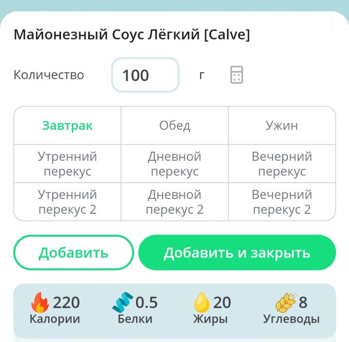 | Кол-во | Калории | Белки | Жиры | Углеводы | |