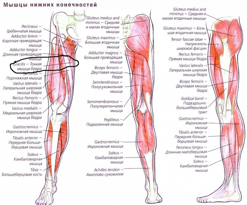 "тонкая мышца" конкретно на внутренней поверхности бедра,