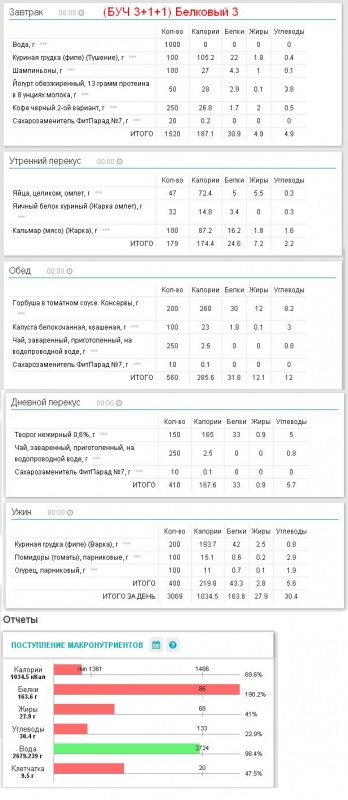 Как видно из диаграмм в белковые дни, как правило, не достигается минимально