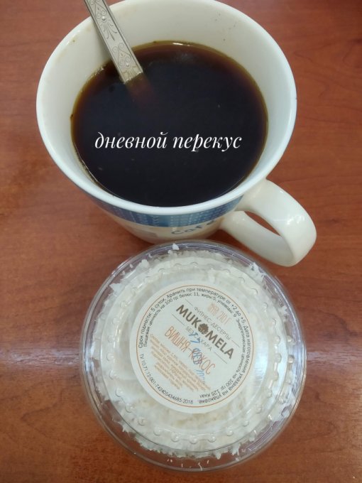 Дневной перекус: фитнес-десерт* "Вишня-кокос", черный кофе.